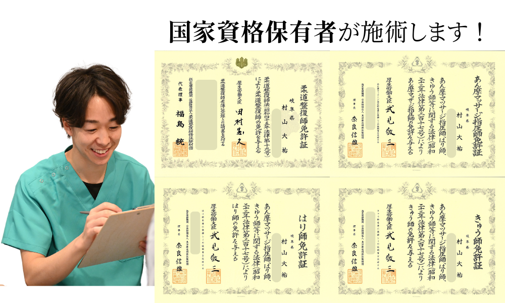 国家資格(はり師、きゅう師、柔道整復師、あん摩マッサージ指圧師)を保有し、大阪での7年の修行を経た施術者が、豊富な知識と経験を活かして地元で開院。痛みの改善や再発予防、美容まで一元化したケアを提供します。